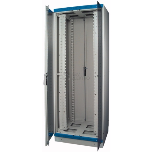 Standardní rozváděč 19z, VT3 800x800x2000+100: snímatelné 2křídlé dveře Jednoduché příčné propojení skříní Variabilní vnitřní vybavení sběrnicemi 19z