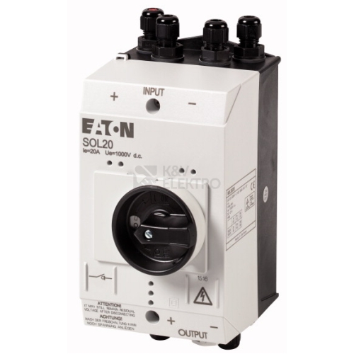 Vypínače SOL v pouzdru jsou připraveny k montáži. Varianty pro 2 nebo 4 řetězů a také pro solární konektory MC4 nebo metrické šroubení umožňují bezproblémovou integraci do různých koncepcí zařízení. Skříň realizuje stupeň krytí IP65. Možnost zamykání nabízí bezpečí v případě servisu. Tlakový vyrovnávací prvek zamezuje tvorbě kondenzované vody a v důsledku toho výpadkům v důsledku napěťových přeskoků.
