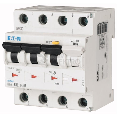 Chránič s nadproud. ochranou FRB, typ AC, char D, 3+N-pólový, In=10A, Idn=0,3A, Ir=250A, Icn=6kA
