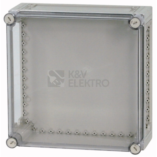 Skříňka s kabelovou přírubou, material: Polykarbonát, odolná proti nárazům, stupeň krytí IP65, patentované upevňovací šrouby víka s integrovaným vyrovnáním přetlaku, bočnice uzavřené, vylamovací, stěny nahoře a dole otevřené, upevňovací šrouby s možností plombování, RAL 7032, štěrkově šedá (dolní část skříňky), průhledná, bezbarvá (víko), vestavná hloubka s montážním plechem=150 mm, provedení krytu: průhledné, provedení dolní části: nahoře a dole otevřené