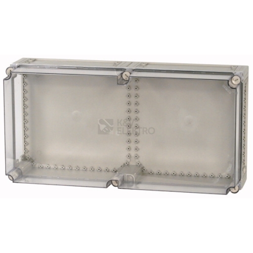 Skříňka s kabelovou přírubou, material: Polykarbonát, odolná proti nárazům, stupeň krytí IP65, patentované upevňovací šrouby víka s integrovaným vyrovnáním přetlaku, bočnice uzavřené, vylamovací, stěny nahoře a dole otevřené, upevňovací šrouby s možností plombování, RAL 7032, štěrkově šedá (dolní část skříňky), průhledná, bezbarvá (víko), vestavná hloubka s montážním plechem=200 mm, provedení krytu: průhledné, provedení dolní části: nahoře a dole otevřené
