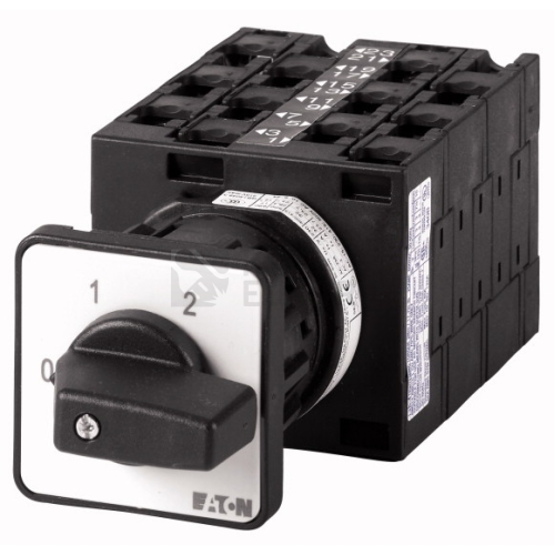 Vačkové spínače podle ČSN/EN60947, konstrukční velikost T3, centrální upevnění do upevňovacího otvoru 22,3 mm, přední štítek 48x48, stupeň krytí vpředu IP65 s černou pákou, jmenovitý trvalý proud Iu 32 A, jmenovité provozní napětí Ue 690V, příslušenství k dodání podle údajů v katalogu Vačkové spínače T