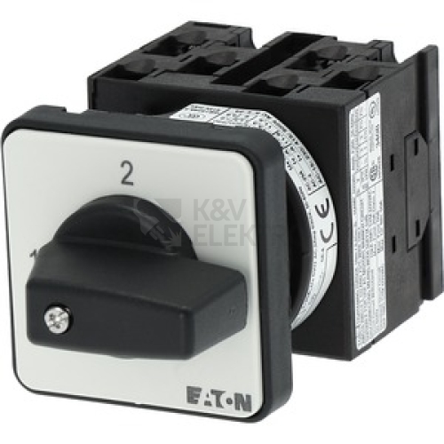 Vačkové spínače podle ČSN/EN60947, konstrukční velikost T0, tvar při montáži, přední štítek 48x48, stupeň krytí vpředu IP65 s černou pákou, jmenovitý trvalý proud Iu 20 A, jmenovité provozní napětí Ue 690V, příslušenství k dodání podle údajů v katalogu Vačkové spínače T. Konstrukční formy všeobecně: skříňky pro povrchovou montáž z izolačního materiálu, montáž, centrální upevnění, základní montáž, montáž do rozváděče IVS