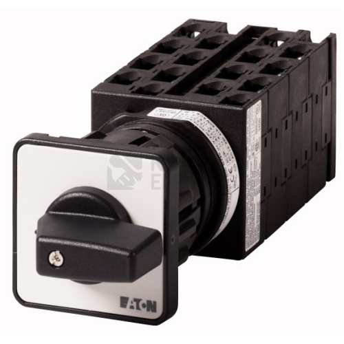 Vačkové spínače podle ČSN/EN60947, konstrukční velikost T0, centrální upevnění do upevňovacího otvoru 22,3 mm, přední štítek 48x48, stupeň krytí vpředu IP65 s černou pákou, jmenovitý trvalý proud Iu 20 A, jmenovité provozní napětí Ue 690V, příslušenství k dodání podle údajů v katalogu Vačkové spínače T. Konstrukční formy všeobecně: skříňky pro povrchovou montáž z izolačního materiálu, montáž, centrální upevnění, základní montáž, montáž do rozváděče IVS