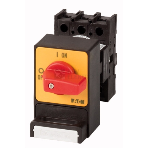Hlavní spínač/vypínač podle IEC/EN 60947-3, 690V/32A, stupeň krytí vpředu IP65, možnost uzamčení visacím zámkem, T-rukojeť červená. Konstrukce zátěžových vypínačů P3 je velmi kompaktní a robustní. Ruční pohon působí na kontakty v přímém spojení. Při vypnutí se kontakty nuceně otevřou. Konstrukční formy všeobecně: Skříňky pro povrchovou montáž z izolačního materiálu, montáž, centrální upevnění, základní montáž, montáž do rozváděče IVS