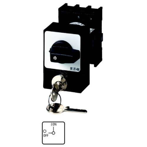 Hlavní spínač/vypínač podle IEC/EN 60947-3, 690V/25A, stupeň krytí vpředu IP65, rukojeť černá s uzamykáním válcovým zámkem. Oddělovací vylínače P3 jsou velmi kompaktní a robustně stavěné. Ruční pohon působí na kontakty v přímém spojení. Při vypnutí se kontakty nuceně otevřou. Konstrukční formy všeobecně: Skříňky pro povrchovou montáž z izolačního materiálu, montáž, centrální upevnění, základní montáž, montáž do rozváděče IVS