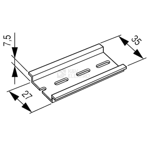 Montážní lišta 35x7,5mm, prořezávaná, podle ČSN/EN 60715, odolnost proti zkratu jako PE vodič odpovídá měděnému vedení 16 qm² podle IEC/EN 60439-1, délka při dodání=1 m
