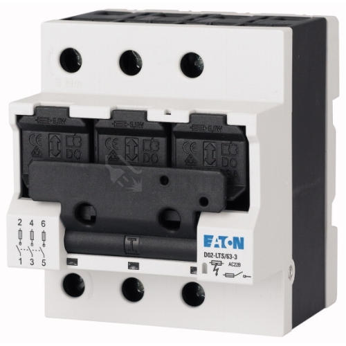 Jmenovité provozní napětí 400 VAC, vhodný pro tavné vložky s provozní třídou gG (gL), aM, šířka jen 4HP, s FI posuvné, proudové kódování díky lícujícím vložkám, se zaplombováním, napájení je možné oboustranně, verze s pomocným spínačem D02-LTS/63-3-HK, přidržovací pružiny pro D01 tavných vložek nebo válcové vložky 10x38 v rozsahu dodávky