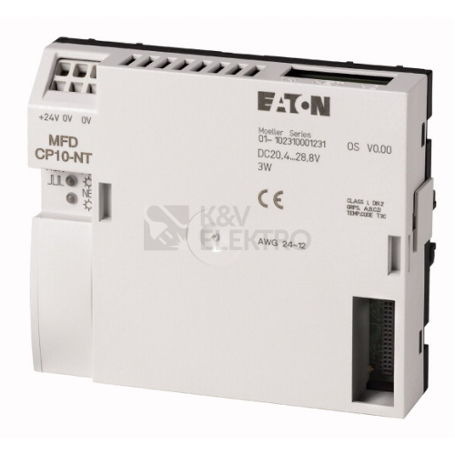 Síťový zdroj a modul CPU stupně krytí pláště IP20, kombinovatelný se zobrazovací a ovládací jednotkou MFD-80-... a I/O zásuvnými moduly, rozšiřitelný: digitální/analogové vstupy/výstupy a I/O moduly ke snímání teploty, prostřednictvím easyLink je s odpovídajícími moduly sběrnic možné připojení k následujícím systémům sběrnice: rozhraní AS s modulem sběrnice EASY205-ASI / CANopen s modulem sběrnice EASY221-CO/ PROFIBUS-DP s modulem sběrnice EASY204-DP / DeviceNet s modulem sběrnice EASY222-DN, prostřednictvím sériového rozhraní je s bránou Ethernet EASY209-SE možné připojení k síti Ethernet, easyNet on board, dvojitý program a paměť masek jako MFD-CP8, upevnění připojení s pružinovými svorkami, dodávka s uživatelským programem je možná