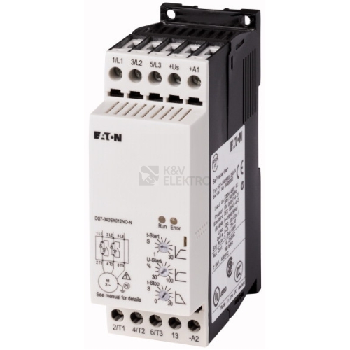 Typy řady DS7 jsou spouštěče s měkkým náběhem k měkkému spouštění třífázových motorů s normální četností spouštění pro rozsah výkonů od 4 do 200 A (1,5 kW až 110 kW při 400 V). Spínací přechodové jevy a podíly stejnosměrného proudu při spuštění jsou účinně potlačeny a zaručují stejnoměrný náběh motoru. Speciální způsob ovládání (asymetrické řízení zapalování / patent Eaton) pro funkci spouštěče nepoužívá stejnosměrné podíly proudu, které za normálních okolností vznikají ve dvoufázovém spouštěči s měkkým náběhem. Díky tomu se potlačí vznik eliptického točivého pole, které vede k nestejnoměrnému náběhu motoru a zbytečně tuto dobu prodlužuje.Rotační chování DS7 je díky tomu srovnatelné s třífázovým řízeným spouštěčem s měkkým náběhem. Ve všech verzích lze výrazně zredukovat lampy a topné zátěže (bez uzemněného bodu hvězdy) a navíc se při krátkodobé náběhové rampě při měkkém spouštění (min. 1 s) výrazně snižuje zapínací proud. Doby rampy a počátečního napětí lze nastavit pomocí potenciometru.Doby mohou dosahovat od 1 do 30 s (start) resp. 0 až 30 s (stop), počáteční napětí (počáteční krouticí moment) lze nastavit v rozsahu 30 až 100 % síťového napětí.Typy DS7-34-MX mají vnitřní překlenovací relé, které po skončení náběhu automaticky sepne a přemostí vnitřní tyristory. Díky této funkci se bez dalších opatření dosahuje stupně rádiového odrušení „B“. Typické oblasti použití spouštěče s měkkým náběhem jsou pohony čerpadel – měkkým náběhem se předchází tlakovým rázům. Mechanické zatěžování celého zařízení klesá a tím roste životnost. Vzduchové pohony – díky měkkému náběhu nekloužou žádné klínové řemeny, což zamezuje předčasnému opotřebení. Díky tomu klesají provozní náklady a zvyšuje se životnost zařízení. Dopravní pásy – dopravní pás se rozeběhne měkce a bez trhnutí. Dopravovaný materiál nepadá a samotný pás je mechanicky chráněn a díky tomu vydrží déle.