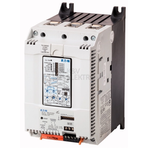 Softstartér, Popis: s interními kontakty typu bypass, Funkce: Softstartér pro třífázovou zátěž, síťové napájecí napětí (50/60 Hz): ULN= 200 - 600 V AC, Napájecí napětí: Us= 24 V DC, Řídicí napětí: UC= 24 V DC, Přiřazený jmenovitý výkon motoru (standardní zapojení, řadové zapojení) při 400 V, 50 Hz: P= 75 kW, při 460 V, 60 Hz: P= 100 HP, Jmenovitý pracovní proud AC-53: Ie= 135 a, Třída rozběhu: TŘÍDA 10 (hvězda-trojúhelník), TŘÍDA 20 (těžký rozběh, 3 x Ie pro 45 s), TŘÍDA 30 (6 x Ie pro 30 s), jmenovité provozní napětí: Ue= 200 V, 230 V, 400 V, 480 V, 600 V, Připojení na SmartWire-DT: ne, Konstrukční velikost: R, Normy a ustanovení: IEC/EN 60947-4-2, UL 508, CSA 22.2-14-1995, GB14048