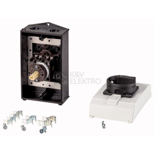 Hlavní spínač, Sortiment: Hlavní vypínač, Přepínač údržby, Vypínače pro opravy, Označení typu: T0, Funkce STOP: Funkce ZASTAVENÍ, s černou ovládací pákou a blokovacím věncem, poznámka: Provedení s vylamovacími otvory, s Stínění montážního plechu, 3-pólové, Možnost uzamčení: Uzamykatelný v poloze 0, Stupeň krytí: IP 65, Provedení: Povrchová montáž, Spínací úhel: 90 °, Výkon motoru AC-23A, 50 - 60 Hz 400 V: P = 5.5 kW, Jmenovitý trvalý proud: Iu = 20 A, 2 Modul(y), Normy a ustanovení: ČSN EN 60947, VDE 0660, ČSN EN 60204, Vypínače podle normy ČSN EN 60947-3
