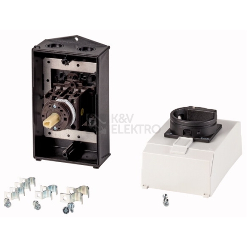 Hlavní spínač, Sortiment: Hlavní vypínač, Přepínač údržby, Vypínače pro opravy, Označení typu: T0, Funkce STOP: Funkce ZASTAVENÍ, s černou ovládací pákou a blokovacím věncem, poznámka: Provedení s vylamovacími otvory, s Stínění montážního plechu, 3-pólové, Možnost uzamčení: Uzamykatelný v poloze 0, Stupeň krytí: IP 65, Provedení: Povrchová montáž, Spínací úhel: 90 °, Výkon motoru AC-23A, 50 - 60 Hz 400 V: P = 5.5 kW, Jmenovitý trvalý proud: Iu = 20 A, 3 Modul(y), Normy a ustanovení: ČSN EN 60947, VDE 0660, ČSN EN 60204, Vypínače podle normy ČSN EN 60947-3