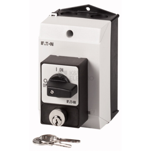 Vačkové spínače podle IEC/EN60947-3, konstrukční velikost T0, 690 V/20A, stupeň krytí vpředu IP65, rukojeť černá s uzamykáním válcovým zámkem. Konstrukční formy všeobecně: Skříňky pro povrchovou montáž z izolačního materiálu, montáž, centrální upevnění, základní montáž montáž do rozváděče IVS. Výkonové, robustní a kompaktní vačkové spínače T se používají v průmyslu, řemeslech i technickém vybavení budov. Na výběr je celá řada standardních obvodů. Jako doplněk se realizují zvláštní obvody specifické pro jednotlivé zákazníky. Zde jsou možnosti téměř neomezené. Program spínačů doplňuje rozsáhlé příslušenství a doplňuje možnosti využití. Všechny proudové dráhy jsou vybaveny dvojitě přerušovanými kontakty.