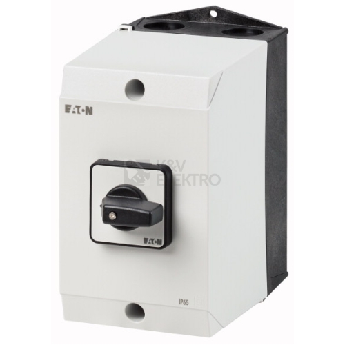 Vačkové spínače podle ČSN/EN60947, konstrukční velikost T3, ve skříňce pro povrchovou montáž, přední štítek ca. 48x48, stupeň krytí IP65, s černou rukojetí, jmenovitý trvalý proud Iu 32 A, jmenovité provozní napětí Ue 690V, příslušenství k dodání podle údajů v katalogu Vačkové spínače T