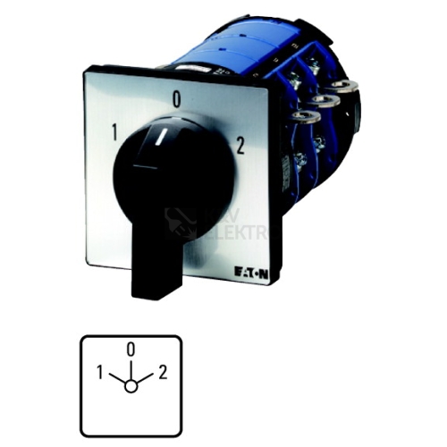 Hlavní spínač podle IEC/EN60947-3, konstrukční velikost T8, 690 V/315A, stupeň krytí vpředu IP65, uzamykatelný v nulové poloze s 3 visacími zámky, konstrukční formy všeobecně: Skříňky pro povrchovou montáž z izolačního materiálu, montáž zadní montáž na DIN lištu. Výkonové, robustní a kompaktní vačkové spínače T se používají v průmyslu, řemeslech i technickém vybavení budov.