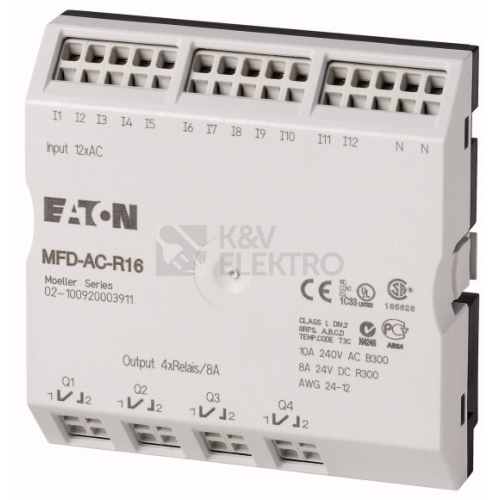 Modul I/O, napájecí zdroj 100-240VAC zachycuje se na MFD-AC-CP8..., 12 digitálních vstupů, 4 reléové výstupy