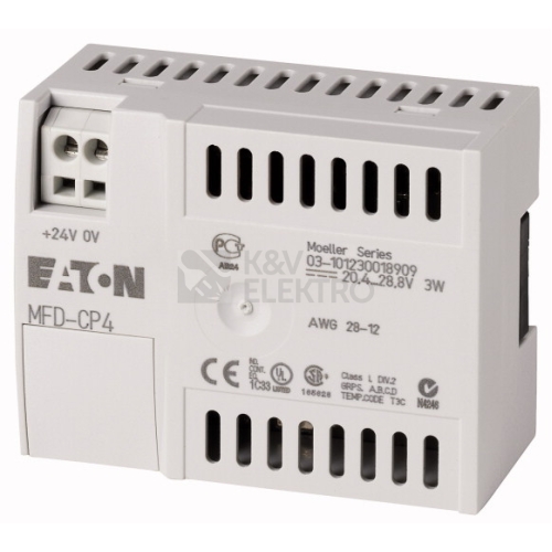 Modul síťového zdroje/komunikační modul lze použít v kombinaci s indikační a ovládací jednotkou MFD-80... jako oddělený textový displej pro modely easy500 / easy700 / easy800 / EC4P / ES4P, stupeň krytí u krytu IP20, bez propojovacích kabelů