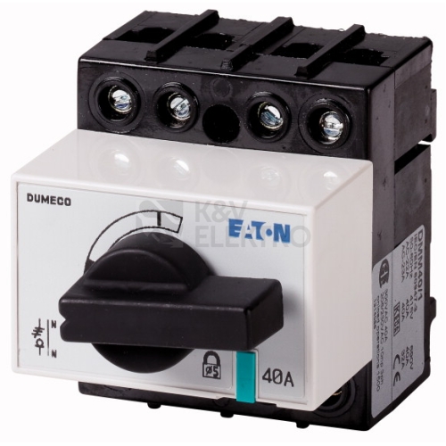 Vypínač Dumeco typ DMM40/1, spínací výkon 40 A, 3pólové + N (pevné), s pevnou ovládací pákou, s osou a ovládací pákou výška spínače: 107 mm (od dolní strany spínače k horní straně ovládací osy / páky)., k montáži na podlahu, vertikální připojení