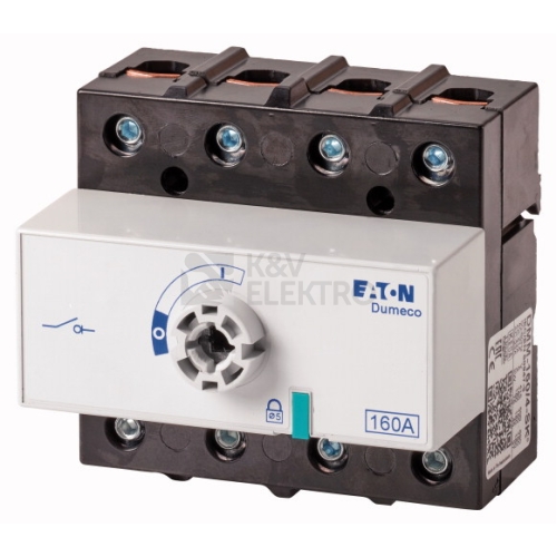 Vypínače, Sortiment: Odpínač, Hlavní vypínač, Přepínač údržby, Označení typu: DMM, Funkce STOP: voliteně, bez otočné páky a prodlužovací osy, Poznámky: viditelné kontakty, Informace k rozsahu dodávky: Pomocný kontakt lze namontovat dodatečně., včetně připojovacího příslušenství, 4pólové, Stupeň krytí: IP20, Provedení: Povrchová montáž, Výkon motoru AC-23A, 50 - 60 Hz 400 V: P = 80 kW, Jmenovitý trvalý proud: Iu = 160 A, Normy a ustanovení: ČSN EN 60947, VDE 0660, ČSN EN 60204, Vypínače podle normy ČSN EN 60947-3