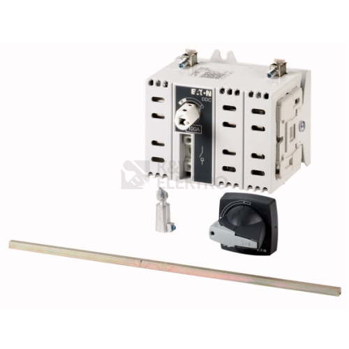 DC odpínače, Sortiment: DC odpínač, Hlavní vypínač, Přepínač údržby, Označení typu: DDC, se šedou otočnou pákou, poznámka: S kovovou osou pro hloubku rozváděčové skříně 400 mm, Informace k rozsahu dodávky: Pomocný kontakt lze namontovat dodatečně., 2pólové, Stupeň krytí: IP20, Provedení: Zadní montáž, Jmenovitý trvalý proud: Iu = 80 A, Normy a ustanovení: ČSN EN 60947, VDE 0660, ČSN EN 60204, Vypínače podle normy ČSN EN 60947-3
