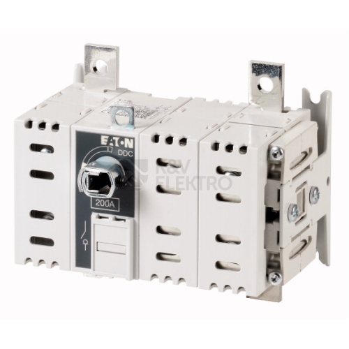 DC odpínače, Sortiment: DC odpínač, Hlavní vypínač, Přepínač údržby, Označení typu: DDC, Funkce STOP: voliteně, bez otočné páky a prodlužovací osy, Informace k rozsahu dodávky: Pomocný kontakt lze namontovat dodatečně., 2pólové, Stupeň krytí: IP20, Provedení: Zadní montáž, Jmenovitý trvalý proud: Iu = 125 A, Normy a ustanovení: ČSN EN 60947, VDE 0660, ČSN EN 60204, Vypínače podle normy ČSN EN 60947-3
