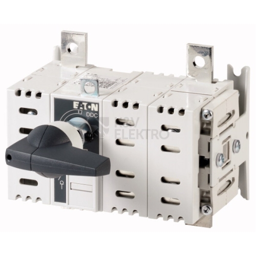 DC odpínače, Sortiment: DC odpínač, Hlavní vypínač, Přepínač údržby, Označení typu: DDC, se šedou otočnou pákou, Informace k rozsahu dodávky: Pomocný kontakt lze namontovat dodatečně., 2pólové, Stupeň krytí: IP20, Provedení: Zadní montáž do rozváděče, Jmenovitý trvalý proud: Iu = 200 A, Normy a ustanovení: ČSN EN 60947, VDE 0660, ČSN EN 60204, Vypínače podle normy ČSN EN 60947-3