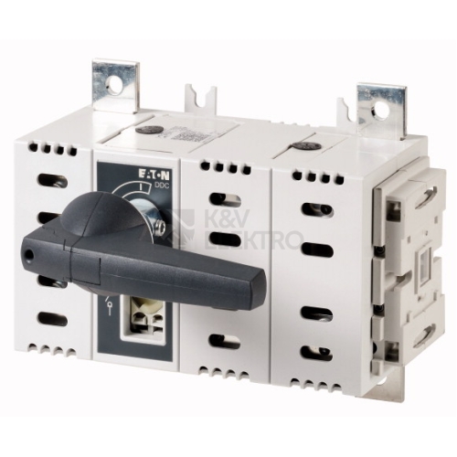 DC odpínače, Sortiment: DC odpínač, Hlavní vypínač, Přepínač údržby, Označení typu: DDC, se šedou otočnou pákou, Informace k rozsahu dodávky: Pomocný kontakt lze namontovat dodatečně., 2pólové, Stupeň krytí: IP20, Provedení: Zadní montáž do rozváděče, Jmenovitý trvalý proud: Iu = 400 A, Normy a ustanovení: ČSN EN 60947, VDE 0660, ČSN EN 60204, Vypínače podle normy ČSN EN 60947-3