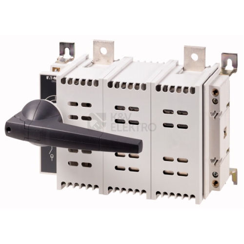 DC odpínače, Sortiment: DC odpínač, Hlavní vypínač, Přepínač údržby, Označení typu: DDC, se šedou otočnou pákou, Informace k rozsahu dodávky: Pomocný kontakt lze namontovat dodatečně., 2pólové, Stupeň krytí: IP20, Provedení: Zadní montáž do rozváděče, Jmenovitý trvalý proud: Iu = 800 A, Normy a ustanovení: ČSN EN 60947, VDE 0660, ČSN EN 60204, Vypínače podle normy ČSN EN 60947-3