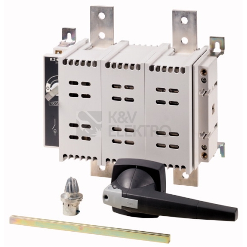 DC odpínače, Sortiment: DC odpínač, Hlavní vypínač, Přepínač údržby, Označení typu: DDC, se šedou otočnou pákou, poznámka: S kovovou osou pro hloubku rozváděčové skříně 400 mm, Informace k rozsahu dodávky: Pomocný kontakt lze namontovat dodatečně., 2pólové, Stupeň krytí: IP20, Provedení: Zadní montáž, Jmenovitý trvalý proud: Iu = 1000 A, Normy a ustanovení: ČSN EN 60947, VDE 0660, ČSN EN 60204, Vypínače podle normy ČSN EN 60947-3