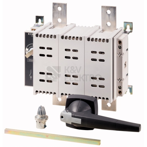 DC odpínače, Sortiment: DC odpínač, Hlavní vypínač, Přepínač údržby, Označení typu: DDC, se šedou otočnou pákou, poznámka: S kovovou osou pro hloubku rozváděčové skříně 400 mm, Informace k rozsahu dodávky: Pomocný kontakt lze namontovat dodatečně., 2pólové, Stupeň krytí: IP20, Provedení: Zadní montáž, Jmenovitý trvalý proud: Iu = 1250 A, Normy a ustanovení: ČSN EN 60947, VDE 0660, ČSN EN 60204, Vypínače podle normy ČSN EN 60947-3