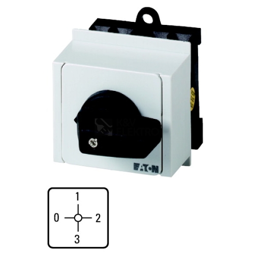 Vačkové spínače podle ČSN/EN60947, konstrukční velikost T0, konstrukce rozvaděče, hmotnost při montáži podle normy DIN 43 880, nasazovací na montážní lištu, stupeň krytí vpředu IP30 s černou pákou, jmenovitý trvalý proud Iu 20 A, jmenovité provozní napětí Ue 690V, příslušenství k dodání podle údajů v katalogu Vačkové spínače T. Konstrukční formy všeobecně: skříňky pro povrchovou montáž z izolačního materiálu, montáž, centrální upevnění, základní montáž, montáž do rozváděče IVS