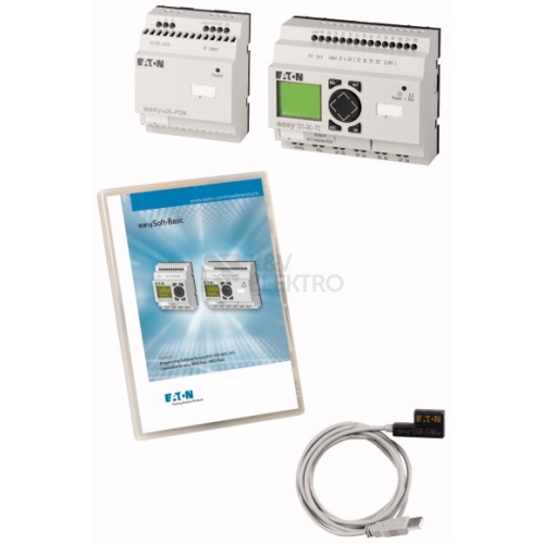 Základní souprava ke snadnému vstupu do řídicí techniky. Základní souprava ke snadnému vstupu do řídicí techniky. Základní souprava obsahuje řídicí relé EASY721-DC-TC a spínací napájecí zdroj easy400-POW, programové vedení easy-USB-CAB k připojení řídicího relé k USB rozhraní PC, programovací software easySoft-Basic na CD a také dokumentaci a příručku jako PDF. K dispozici jsou digitální vstupy (8), výstupy (6) (relé 8A).
