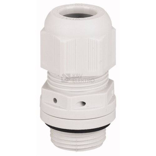 Kabelová průchodka s integrovaným vyrovnáním tlaků, přívod vedení=M20, průměr otvoru (vrtání)=20,5mm, použití kabel NYM/NYY, 4žilová=H05VV-F4x2,5/3x4, NYM 5x1,5/5x2,5qm² , stupeň krytí IP6pK, polyamid, bez obsahu halogenů, RAL 7035, s pojistnou maticí a integrovaným odlehčením v tahu, požární třída V2 podle UL94