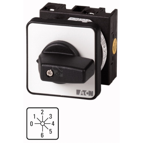 Vačkové spínače podle ČSN/EN60947, konstrukční velikost T0, tvar při montáži, přední štítek 48x48, stupeň krytí vpředu IP65 s černou pákou, jmenovitý trvalý proud Iu 20 A, jmenovité provozní napětí Ue 690V, příslušenství k dodání podle údajů v katalogu Vačkové spínače T. Konstrukční formy všeobecně: skříňky pro povrchovou montáž z izolačního materiálu, montáž, centrální upevnění, základní montáž, montáž do rozváděče IVS