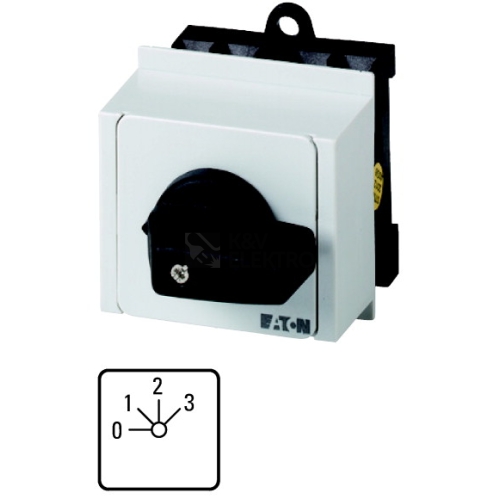 Vačkové spínače podle ČSN/EN60947, konstrukční velikost T0, konstrukce rozvaděče, hmotnost při montáži podle normy DIN 43 880, nasazovací na montážní lištu, stupeň krytí vpředu IP30 s černou pákou, jmenovitý trvalý proud Iu 20 A, jmenovité provozní napětí Ue 690V, příslušenství k dodání podle údajů v katalogu Vačkové spínače T. Konstrukční formy všeobecně: skříňky pro povrchovou montáž z izolačního materiálu, montáž, centrální upevnění, základní montáž, montáž do rozváděče IVS