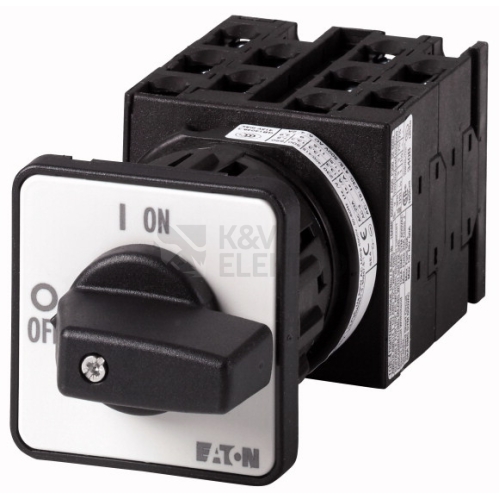 Vačkové spínače podle ČSN/EN60947, konstrukční velikost T0, centrální upevnění do upevňovacího otvoru 22,3 mm, přední štítek 48x48, stupeň krytí vpředu IP65 s černou pákou, jmenovitý trvalý proud Iu 20 A, jmenovité provozní napětí Ue 690V, příslušenství k dodání podle údajů v katalogu Vačkové spínače T. Konstrukční formy všeobecně: skříňky pro povrchovou montáž z izolačního materiálu, montáž, centrální upevnění, základní montáž, montáž do rozváděče IVS