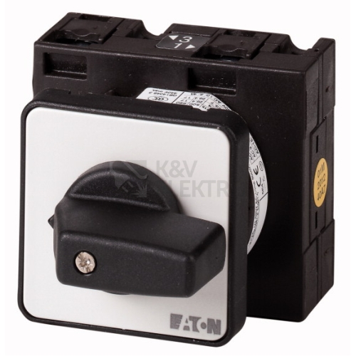 Vačkové spínače podle ČSN/EN60947, konstrukční velikost T3, tvar při montáži, přední štítek 48x48, stupeň krytí vpředu IP65 s černou pákou, jmenovitý trvalý proud Iu 32 A, jmenovité provozní napětí Ue 690V, příslušenství k dodání podle údajů v katalogu Vačkové spínače T