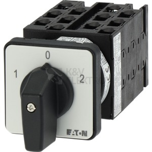 Vačkové spínače podle ČSN/EN60947, konstrukční velikost T0, tvar při montáži, přední štítek 48x48, stupeň krytí vpředu IP65 s černou pákou, jmenovitý trvalý proud Iu 20 A, jmenovité provozní napětí Ue 690V, příslušenství k dodání podle údajů v katalogu Vačkové spínače T. Konstrukční formy všeobecně: skříňky pro povrchovou montáž z izolačního materiálu, montáž, centrální upevnění, základní montáž, montáž do rozváděče IVS