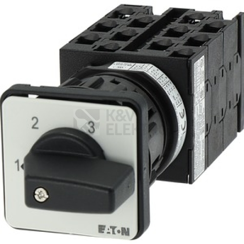 Vačkové spínače podle ČSN/EN60947, konstrukční velikost T0, centrální upevnění do upevňovacího otvoru 22,3 mm, přední štítek 48x48, stupeň krytí vpředu IP65 s černou pákou, jmenovitý trvalý proud Iu 20 A, jmenovité provozní napětí Ue 690V, příslušenství k dodání podle údajů v katalogu Vačkové spínače T. Konstrukční formy všeobecně: skříňky pro povrchovou montáž z izolačního materiálu, montáž, centrální upevnění, základní montáž, montáž do rozváděče IVS