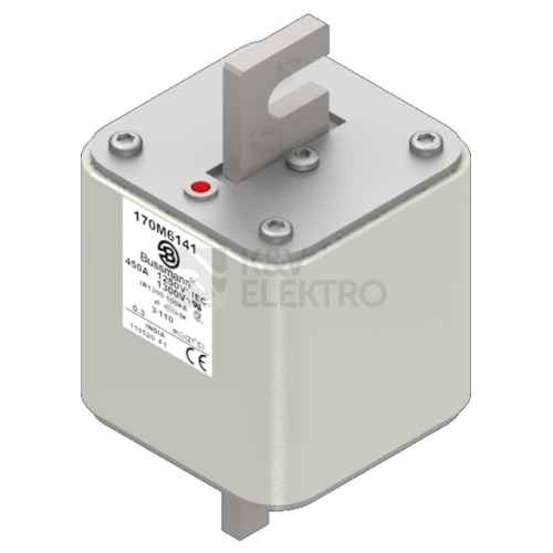 Válcová pojistka, vysokorychlostní, 450 A, AC 1250 V, size 3, 76 x 90 x 139 mm, aR, DIN, IEC, samostatný indikátor