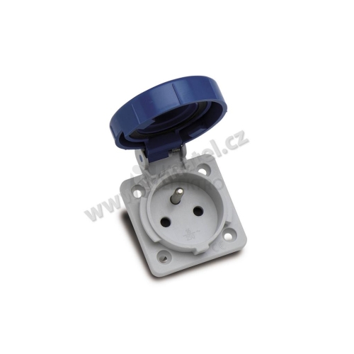 Zásuvka vestavná 13960-F IP67/230V/16A s ochranným kolíkem, modrá, šroubové svorky. Rozměry: 73x63x47mm, rozteč otvorů pro šroubky 38x38mm.Vidlice, zásuvky a spojky pro domovní a podobné vnitřní nebo venkovní použití. Vidlice a zásuvky s ochranným kolíkem (dle českých standardů), varianty dostupné i v provedení „SCHUKO“ (s postranními ochrannými kontakty, nejsou určeny po český trh). Provedení až do krytí IP67.