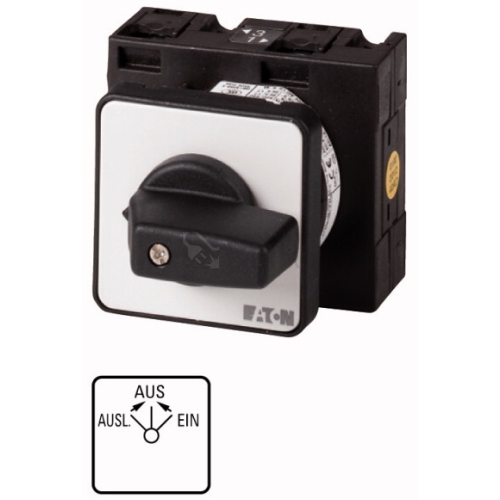 Vačkové spínače podle ČSN/EN60947, konstrukční velikost T3, centrální upevnění do upevňovacího otvoru 22,3 mm, přední štítek 48x48, stupeň krytí vpředu IP65 s černou pákou, jmenovitý trvalý proud Iu 32 A, jmenovité provozní napětí Ue 690V, příslušenství k dodání podle údajů v katalogu Vačkové spínače T
