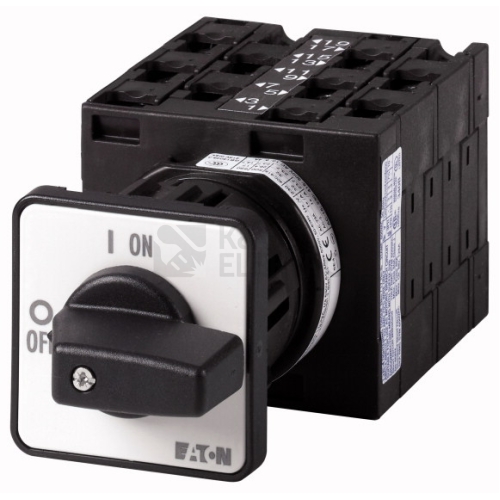 Vačkové spínače podle ČSN/EN60947, konstrukční velikost T3, centrální upevnění do upevňovacího otvoru 22,3 mm, přední štítek 48x48, stupeň krytí vpředu IP65 s černou pákou, jmenovitý trvalý proud Iu 32 A, jmenovité provozní napětí Ue 690V, příslušenství k dodání podle údajů v katalogu Vačkové spínače T