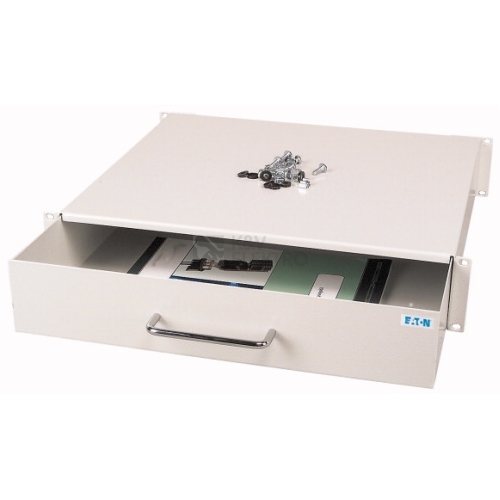 Police: slouží jako odkládací plochy pro přístroje bez upevnění 19z, vestavná výška: 2 RU, max. statická mez únosnosti: 50 kg, RAL 7035, ocelový plech práškově lakovaný