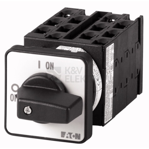 Vačkové spínače podle IEC/EN60947-3, konstrukční velikost T0, 690 V/20A, stupeň krytí vpředu IP65, s černou ovládací pákou. Konstrukční formy všeobecně: Skříňky pro povrchovou montáž z izolačního materiálu, montáž, centrální upevnění, základní montáž montáž do rozváděče IVS. Výkonové, robustní a kompaktní vačkové spínače T se používají v průmyslu, řemeslech i technickém vybavení budov. Na výběr je celá řada standardních obvodů. Jako doplněk se realizují zvláštní obvody specifické pro jednotlivé zákazníky. Zde jsou možnosti téměř neomezené. Program spínačů doplňuje rozsáhlé příslušenství a doplňuje možnosti využití. Všechny proudové dráhy jsou vybaveny dvojitě přerušovanými kontakty.