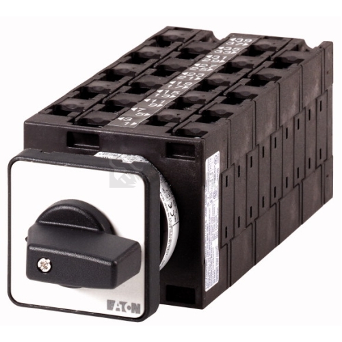 Vačkové spínače podle ČSN/EN60947, konstrukční velikost T3, tvar při montáži, přední štítek 48x48, stupeň krytí vpředu IP65 s černou pákou, jmenovitý trvalý proud Iu 32 A, jmenovité provozní napětí Ue 690V, příslušenství k dodání podle údajů v katalogu Vačkové spínače T