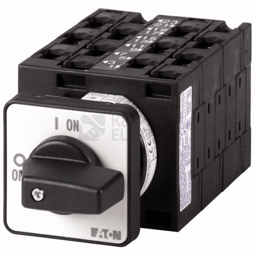 Vačkové spínače podle ČSN/EN60947, konstrukční velikost T3, tvar při montáži, přední štítek 48x48, stupeň krytí vpředu IP65 s černou pákou, jmenovitý trvalý proud Iu 32 A, jmenovité provozní napětí Ue 690V, příslušenství k dodání podle údajů v katalogu Vačkové spínače T