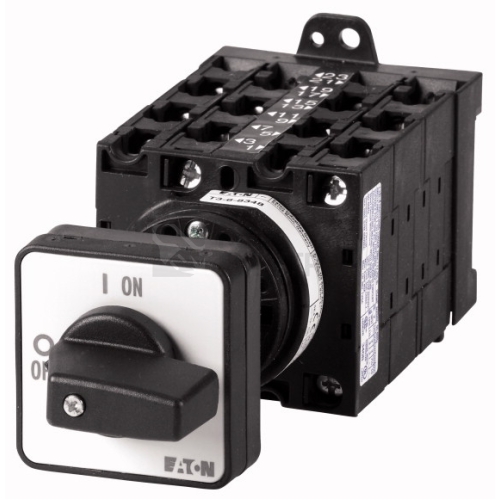 Vačkové spínače podle ČSN/EN60947, konstrukční velikost T3, forma zadní montáže na DIN lištu, upevnění k podlaze se západkou a šroubem, pohon se spojkou pro dveře nebo víko, přední štítek 48x48, stupeň krytí vpředu IP65 s černou pákou, jmenovitý trvalý proud Iu 32 A, jmenovité provozní napětí Ue 690V, příslušenství k dodání podle údajů v katalogu Vačkové spínače T