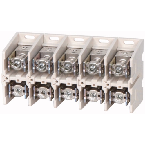 Připojovací svorky K, pro AL a CU, jedna strana kulatá, druhá plochá, jmenovitý povozní proud Ie=400 A, póly=5, průřezy připojení: měděný kulatý kabel o více vodičích, sektorový kabel vícedrátový, kulatý kabel jednodrátový, sektorový kabel jednodrátový, kulatý kabel jednodrátový, sektorový kabel jednodrátový=1x50-240 nebo 2x25-120 qm² nebo hliník, sektorový kabel jednodrátový=1x95-185 nebo 2x50-95 qm². Jiná strana: Cu pás 6x16x0,8 až 10x16x0,8 nebo Cu lišta 25x15 mm, upozornění: Sady na přestavbu z napojení pásu na napojení kabelu jsou k dostání samostatně, kryty svorek k dostání samostatně